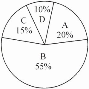 1. 某果农将直径从65mm至85mm的苹果每相差5mm分为1个等级,共分为A、B、C、D四个等级,它们每箱的价格依次是20元、30元、40元、50元. 某天这四个等级的苹果销售数量的百分比如图所示,则这天销售的苹果每箱的平均价格为(