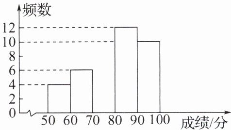 ②在$80\leqslant x<90$这一组的成绩(单位:分)分别是80,81,83,83,84,85,86,86,86,87,88,89.