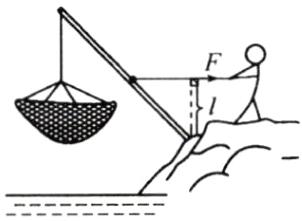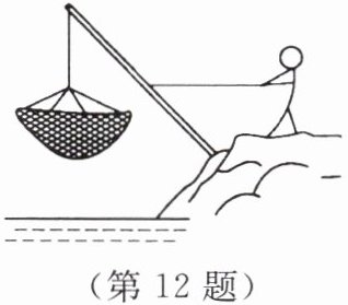 12. 如图是渔民在小河捕鱼的情景,请画出此渔民使渔网上升时杠杆的动力及动力臂.