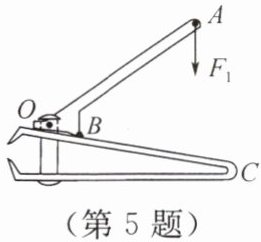 5. (2022·湖北·统考中考真题)如图所示是指甲剪的示意图.请在图中画出杠杆ABO以O点为支点时动力$F_{1}的力臂l_{1}和阻力F_{2}$.(忽略摩擦,保留作图痕迹)