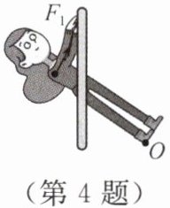 4. (2022·四川成都·统考中考真题)如图所示是小兰在练习"斜身引体"项目时的情景.把人体视为杠杆,O为支点,动力等效为$F_{1}$,请画出$F_{1}的力臂l_{1}$.