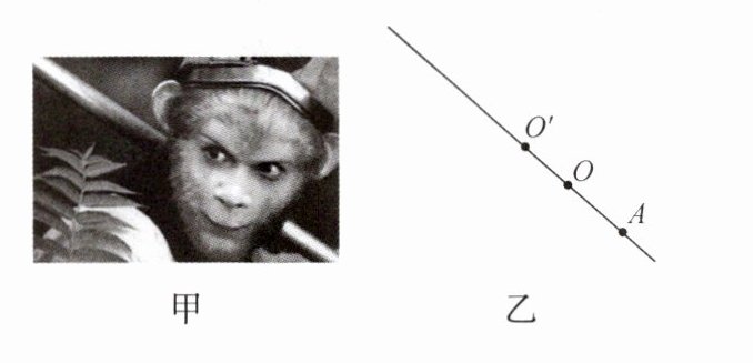 6. (2022·辽宁丹东·统考中考真题)《西游记》中的孙悟空形象深受人们喜爱.如图甲所示所示,孙悟空肩上的金箍棒可看作杠杆,其简图如图乙所示.图中,O为支点,$O'$为金箍棒重心位置,A为动力F的作用点.请在图中画出:
