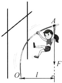 3. 如图所示是撑竿跳运动员起跳动作示意图,请在图中画出运动员对撑竿A点竖直向下的拉力及其力臂.