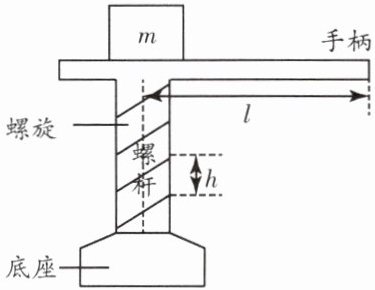 .螺旋千斤顶结构如图所示,如果人始终垂直于手柄用力为$F$,且作用点离螺杆中心的距离为$l$,每旋转两圈,螺杆将质量为$m的重物上举的高度为h$,则螺旋千斤顶的机械效率用字母表示为$\eta = $$\frac{mgh}{4\pi Fl}×100\%$
