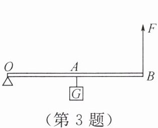 3. (2023春·江苏宿迁·九年级校联考阶段练习)如图所示,轻质杠杆OB可绕O点转动,OA= AB,用细线将重为G的物体悬挂在A点,在B点作用竖直向上的拉力F,则在保持杠杆水平静止的情况下 (