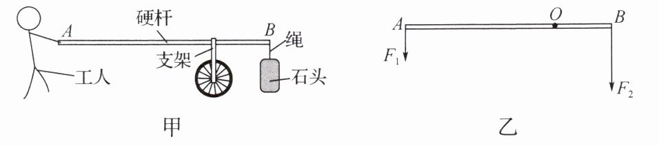8. (2023·广东广州·统考中考真题)图甲中工人用工具搬运石头,该工具可简化成图乙中杠杆AB,移动支架,可使支点O在AB间移动.硬杆水平静止,忽略硬杆重.