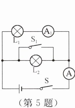 5. 如图所示,开关S闭合,$S_{1}$断开时,两电灯的连接方式是