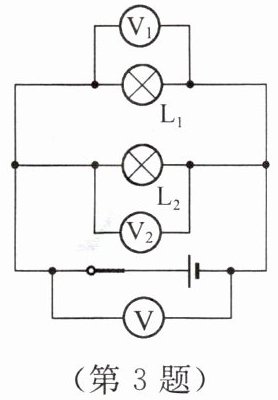 3. 如图所示,灯泡$L_{1}比L_{2}$亮,电压表$V_{2}$的示数为6V,下列说法正确的是 (