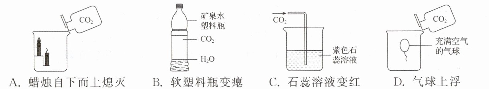 1. 下列实验现象既能体现二氧化碳的物理性质,又能体现其化学性质的是 (