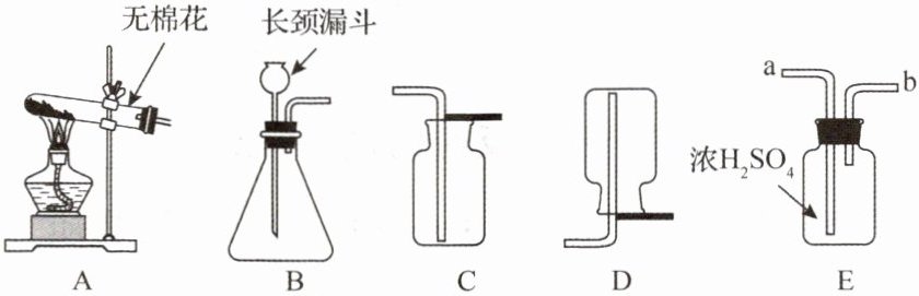 (填字母)。(3)干燥$CO_{2}$气体,从装置E中的