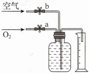 。(2) 若用如图装置收集一瓶(150mL)含氧气的体积分数约为60%的气体,方法是:在150mL集气瓶里装满水,塞紧橡胶塞并关闭活塞b,打开活塞a通入氧气,把瓶里的水排入量筒,当量筒内的水达到设定的体积后立即关闭活塞a,然后打开活塞b通入空气,把瓶里的水全部排入量筒。则停止通入氧气时量筒内水的体积约为