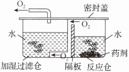 11. 生活中选择合适的药品和装置可以制取氧气。某款家用制氧机利用两种化学药剂[过碳酸钠 $ (2\text{Na}_2\text{CO}_3 \cdot 3\text{H}_2\text{O}_2) $ 和二氧化锰]同时加入水中制取氧气,装置如右图所示。