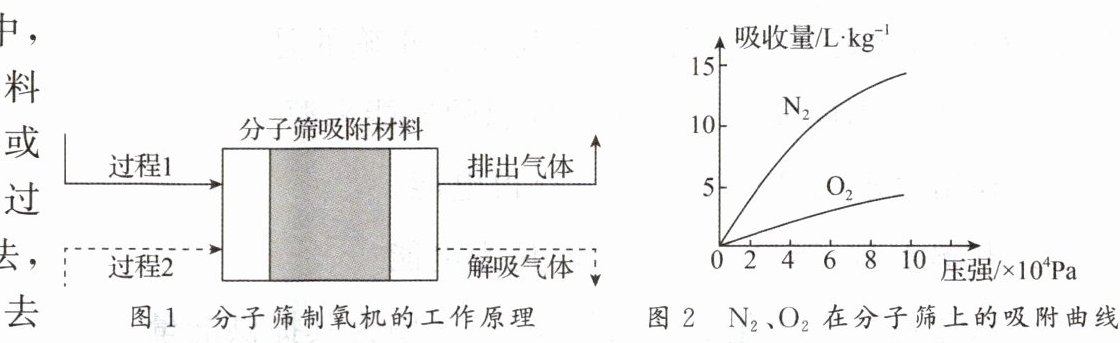 由图1、图2可知:过程1中,空气通过分子筛吸附材料时,