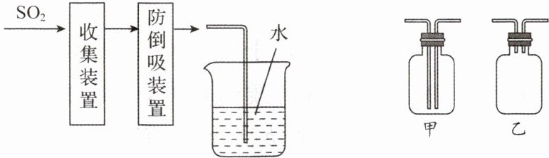 (填字母)。②甲、乙两图中“防倒吸装置”在$SO_{2}$的防倒吸中应选择装置