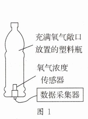4. 借助氧气传感器探究分子的运动。如图所示,收集一塑料瓶氧气按图 1 组装依次进行以下三个实验:①敞口放置;②双手捂在塑料瓶外;③将塑料瓶的瓶口朝下、测得瓶内氧气的体积分数随操作时间变化的曲线如图 2 所示。下列说法
