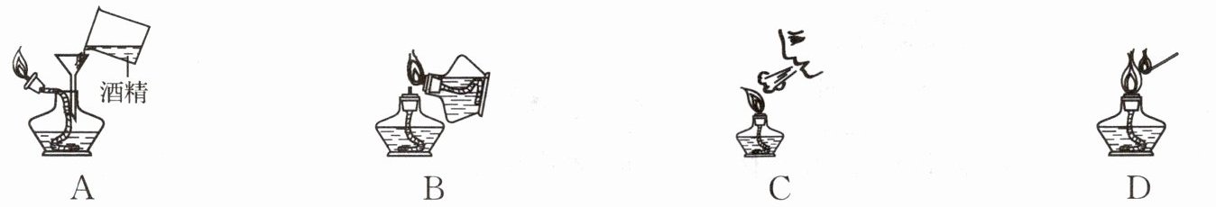1. 以下跟酒精灯有关的实验操作正确的是 (