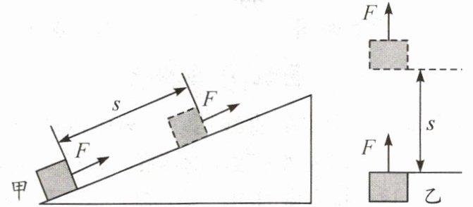 由题知,甲、乙所受拉力$F$相等,通过距离$s$相等,根据$W=Fs$,得$W_{甲}=W_{乙}$。