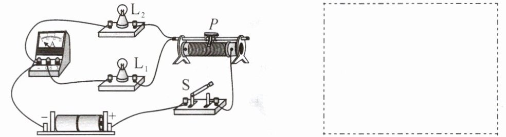 3. 连接滑动变阻器:滑动变阻器采用“一上一下”的连接方式,这里我们选择滑片$P$左侧的电阻丝接入电路,即把滑动变阻器左下接线柱与$L_2$右接线柱相连。