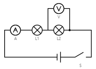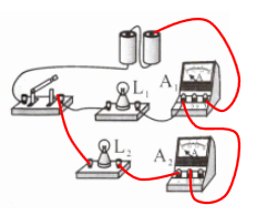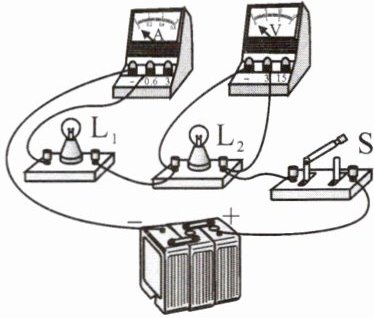 4. 连接电流表:将电流表“$0.6$”接线柱与$L_2$左接线柱相连,“$-$”接线柱与电源负极相连。