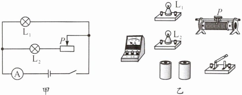 5. 连接电源和灯泡:电源正极与$L_1$、$L_2$的左接线柱相连,$L_1$右接线柱与滑动变阻器金属杆右接线柱相连,这样就完成了整个实物电路的连接。