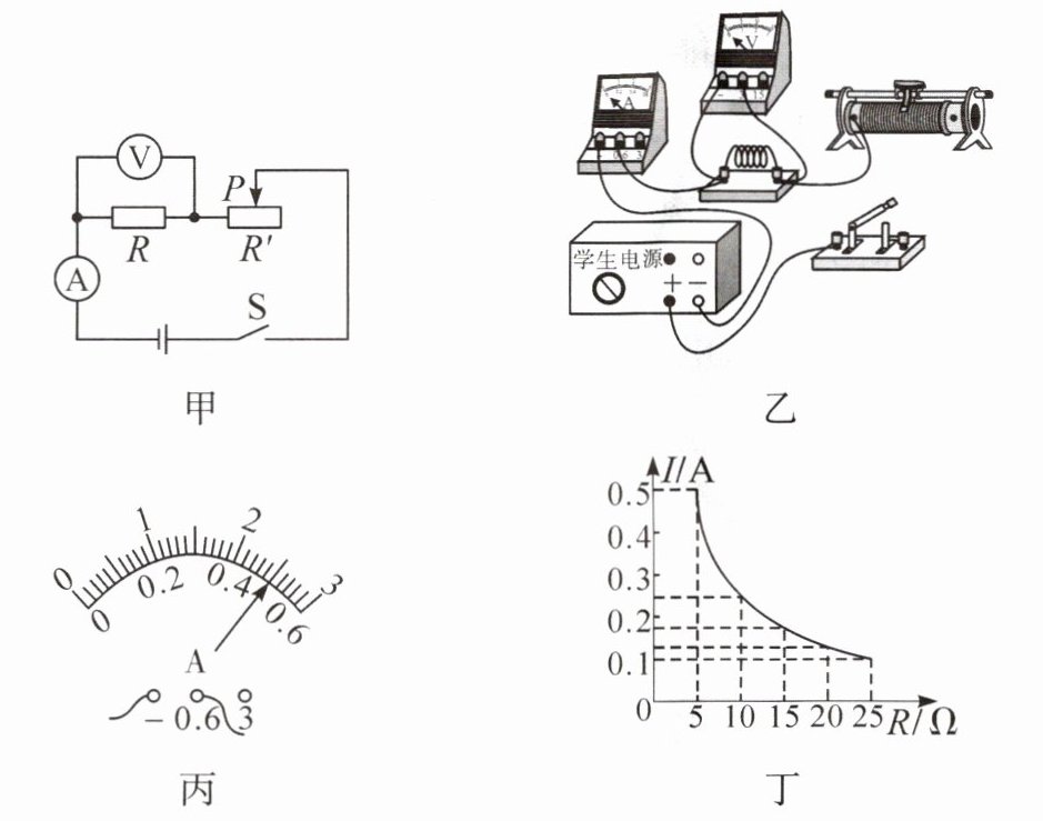(3)第一次实验取定值电阻为5 Ω,闭合开关后,使电压表示数为2.5 V,电流表示数如图丙所示,为______A。