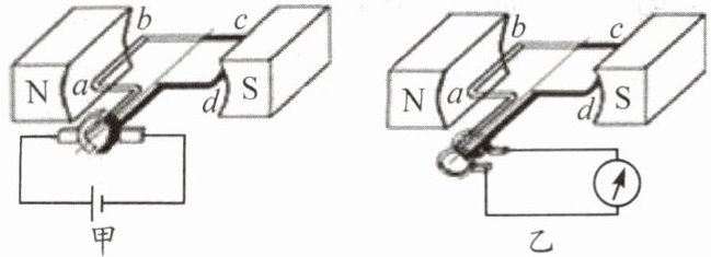 对于乙图,当线圈在磁场中转动时,会切割磁感线,从而产生感应电流,这是发电机的工作原理。