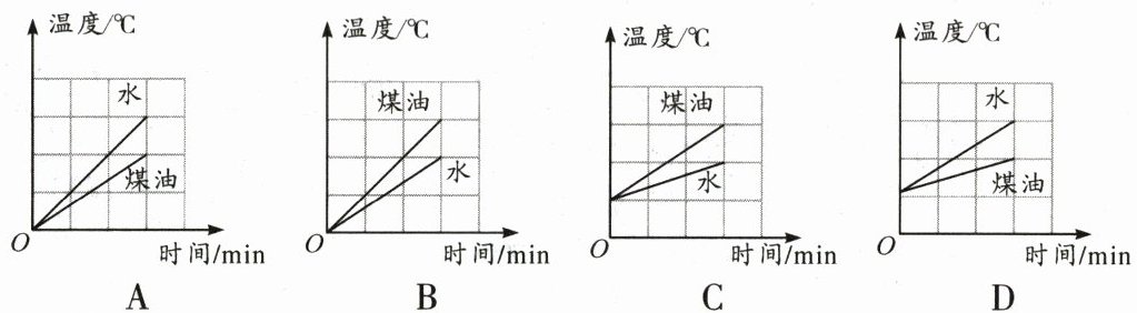 相等的煤油和水,用相同热源对试管均匀加热。如图中的图像正确的是(C