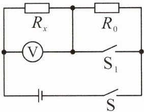 7. 小李同学用一个电压表和已知阻值的电阻R₀,设计了如图所示的电路,测出了待测电阻Rₓ的阻值。实验步骤如下: