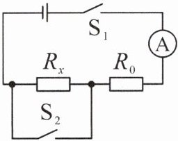 6. 小军同学用电流表和一个定值电阻R₀测量未知电阻Rₓ的阻值(电源电压未知)。他们设计了如图所示的电路图,并进行如下实验操作:
