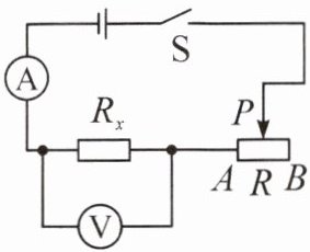 (选填“A”或“B”)端。(2)闭合开关,移动滑片 P,当电压表示数为 7.5 V 时,电流表示数为 0.25 A,则测得 $ R_x $ 的阻值是