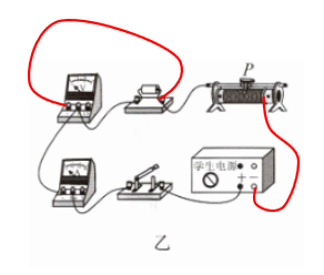 (1)请用笔画线代替导线将图乙所示的实物元件按图甲电路连接完整,要求:连线不能交叉,滑片向右移动时,电流表示数变大。
