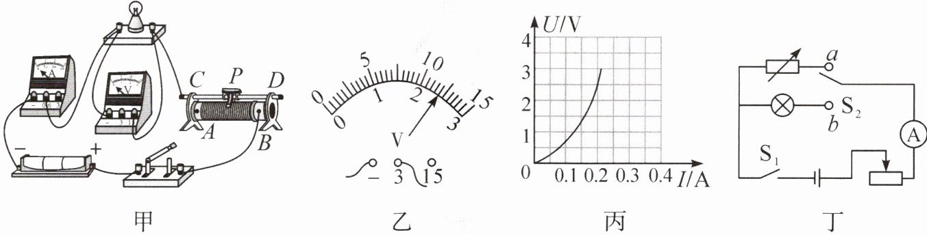 (2)观察图乙,电压表选择的是$0-3V$量程,分度值为$0.1V$,指针所指位置为$2.4V$。
