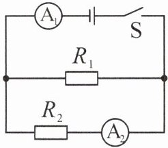 (1)由图知,R₁与R₂并联,电流表A₁测干路电流,A₂测R₂支路电流。