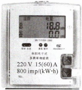 电能表上标有“$220V$”表示电能表的工作电压,“$15(60)A$”中$60A$是电能表允许通过的最大电流。