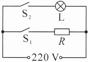(1) 由图可知,闭合开关$S_1$和$S_2$时,R与L并联,电源电压$U = 220V$。