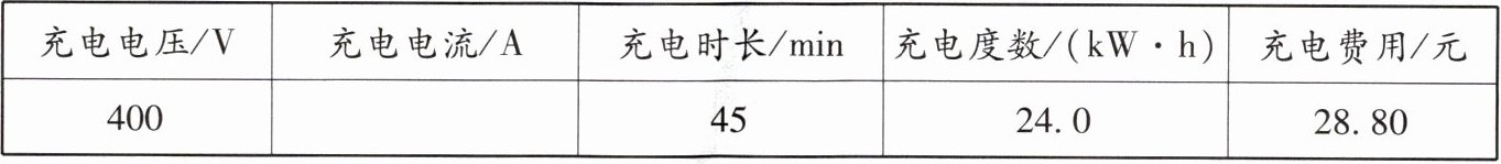 |充电电压/V|充电电流/A|充电时长/min|充电度数/(kW·h)|充电费用/元|