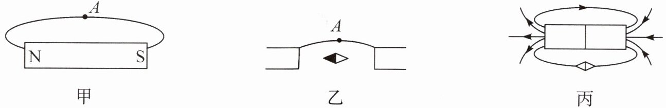(2) 图乙左侧磁体为S极,右侧为N极;A点磁场方向向右(画箭头表示)。