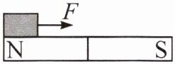 解:铁块在磁铁上匀速运动,拉力F等于铁块受到的摩擦力与磁铁吸引力的合力。磁铁两端磁性最强,中间磁性最弱,铁块从磁铁N极向S极运动时,受到的磁铁吸引力先变小后变大,而摩擦力不变,所以拉力F先变小后变大。