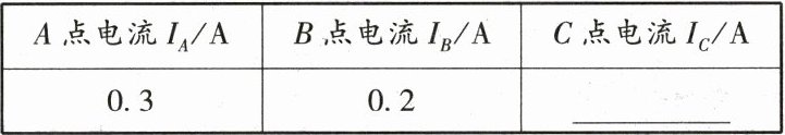 (5)根据表格中的数据$I_A = 0.3A$,$I_B = 0.2A$,$I_C = 0.5A$,可以发现$I_A + I_B = 0.3A + 0.2A = 0.5A = I_C$,所以得出并联电路中电流的规律是:并联电路中干路电流等于各支路电流之和。