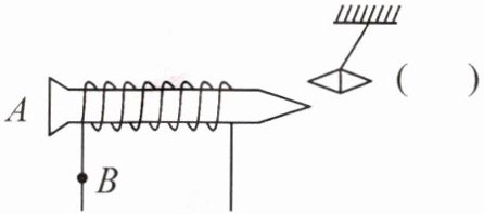 9. 如图所示,铁钉A端为N极,附近的小磁针处于静止。请你在图中标出: