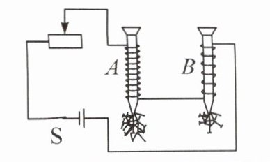相同。他在实验中发现铁钉A比B能吸引更多的大头针,由此可知,当电流