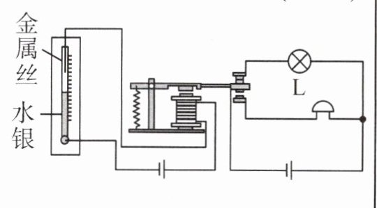 )A.报警器中水银温度计和电磁铁串联在电路中