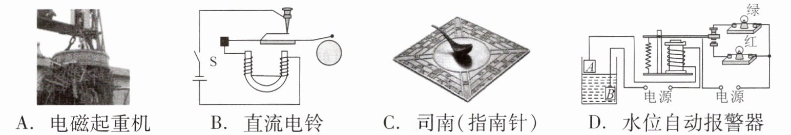 C选项:司南(指南针),它是利用地磁场对磁体的作用来指示方向的,与电磁继电器无关,因此C选项不符合题意。