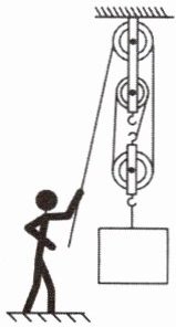 5. 在九年级物理拓展课上,李博同学模拟某建筑工地上塔吊的工作情景,设置了如图所示的滑轮组来提升装修材料,若他用250 N的拉力在20 s内将450 N的材料提升了10 m(不计绳重和摩擦,g取10 N/kg)。问: