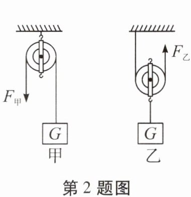 2. 两个完全相同的滑轮,其重力均为10 N。分别用如图所示的两种方式,将重均为40 N的甲、乙两物体匀速提升相同的高度,所用的拉力为$F_{甲}$、$F_{乙}$,它们的机械效率分别为$\eta_{甲}$、$\eta_{乙}$,下列判断正确的是(
