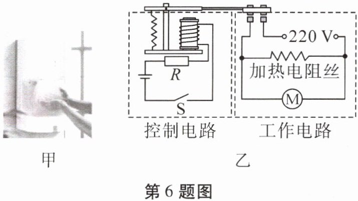 6. 如图甲为某款全自动感应干手器,其工作原理简化图如图乙所示。控制电路中的电磁继电器的原理利用了电流的
