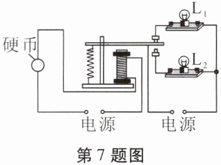 7. 下水井盖的丢失给人们出行带来了安全隐患,为提示路人注意安全,小明设计了如图所示的电路,电路中利用一元硬币代替铁质井盖是因为两者都属于