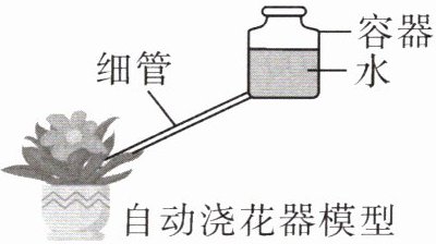 2. 方案二,小明从网上搜到一种简易“浇花神器”如图甲所示,这类浇花神器利用重力原理工作,先将装置充满水,水依靠自身重力,通过细长的出水口缓慢滴流到土壤中,其目的是通过让水缓慢、持续滋润植物根部,实现自动供水,满足植物在主人外出等情况下的水分需求。但缺点是难以控制浇水速度以及水的用量难以精准调节,无法根据花卉实际需水情况、天气变化、植物生长阶段灵活调整,易出现浇水过多致根部腐烂,或浇水不足影响生长的问题。