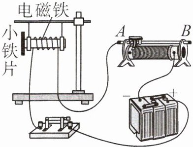 3.如图所示,开关闭合,滑动变阻器的滑片位于A端,小铁片被竖直吸在电磁铁的左侧,若将滑片从A端移动到中点,则(