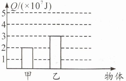 解:由图可知,甲燃料完全燃烧放出的热量$Q_{甲}=2×10^{7}J$,乙燃料完全燃烧放出的热量$Q_{乙}=3×10^{7}J$。